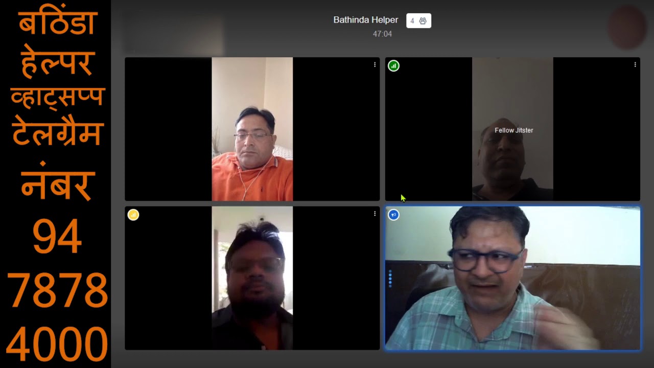 इस टॉपिक पर कुछ भी कहने के लिए, या इन मीटिंग में खुद शामिल होने के लिए, या बठिंडा हेल्पर व्हाट्सप्प/टेलेग्राम ग्रुपस में शामिल होने के लिए बठिंडा हेल्पर को 94 7878 4000 पर व्हाट्सप्प/टेलग्रैम msg भेजें।